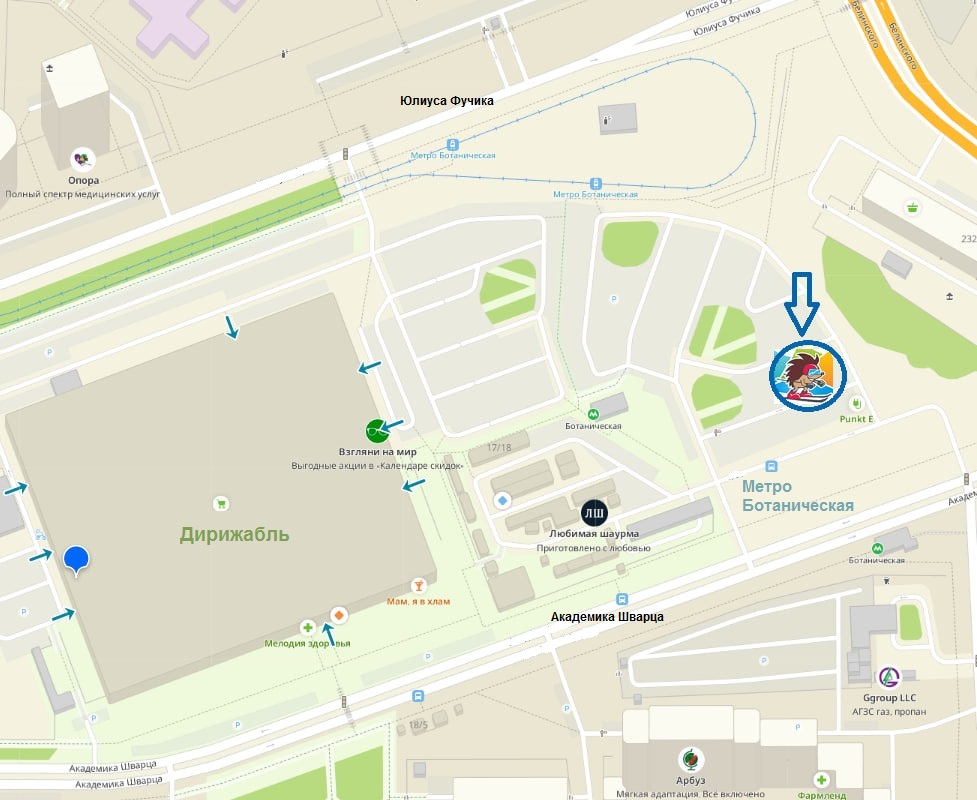 (въезд с ул.Шварца, Автобусная остановка «метро Ботаническая»;